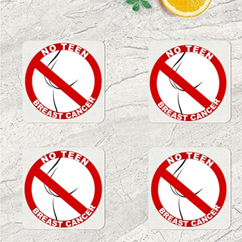 Presenting the 'NO TEEN BREAST CANCER Coasters,' crafted from opulent faux leather, each measuring a square of 3 inches by 3 inches. These exquisite coasters epitomize a harmonious fusion of elegance and functionality. Remarkably, they possess the qualities of being impervious to heat, insuperably durable, resistant to stains and spills, and endowed with anti-skid attributes. Their resolute craftsmanship assures their serviceability over extended periods.