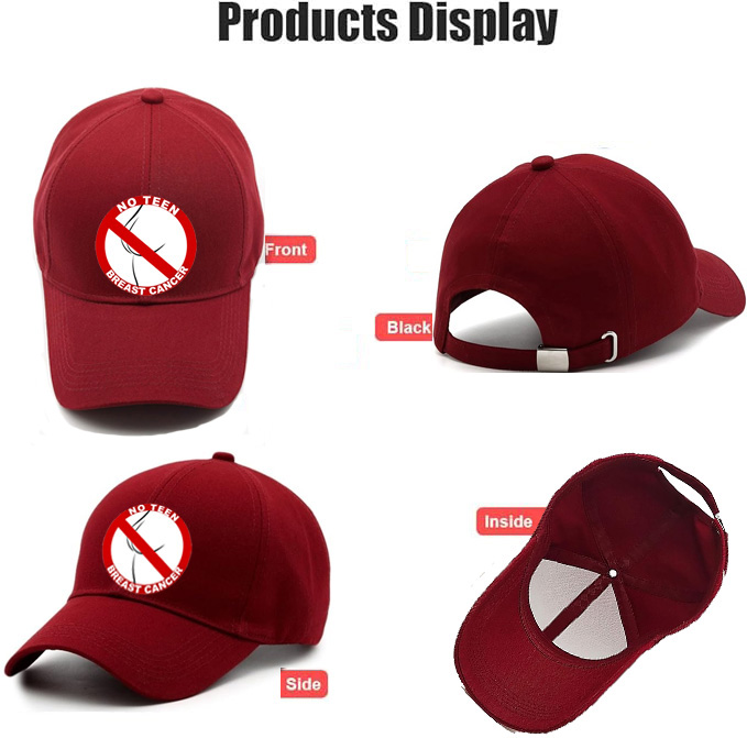 To preserve the cap's integrity and personalized message, it is recommended to treat it with care by opting for hand wash only. Elevate your style while supporting a meaningful cause with the 'NO TEEN BREAST CANCER Personalized Baseball Cap.' It's more than just headwear; it's a symbol of awareness and compassion."